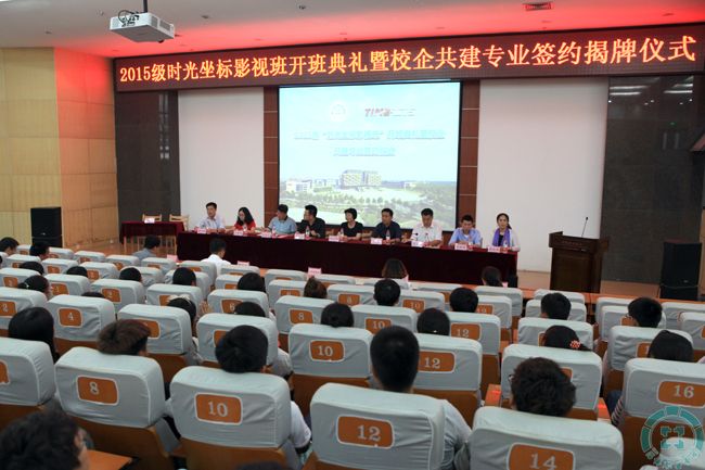 本站讯 9月22日,我院2015级“时光坐标影视班”开班典礼暨校企共建专业签约揭牌仪式在北区报告厅举行。