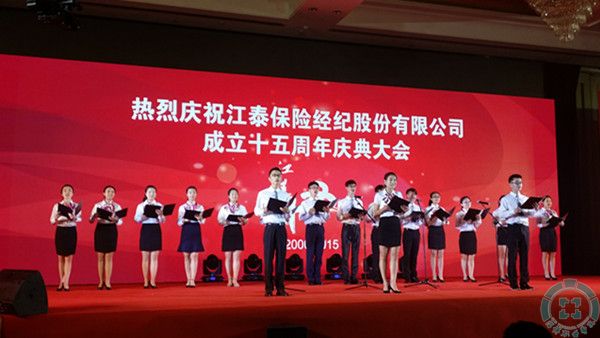 庆典活动上,举行了江泰公司员工演讲比赛、保险项目启动、16条核心价值观发布等,特别是8所合作院校学生代表带来的朗诵《青春与江泰》节目,令人耳目一新。我院“江泰班”学生刘梦娇被推选为领诵,她甜美朗润的嗓音与从容大方的仪态,受到了公司领导的好评。江泰公司董事长沈开涛还与所有“江泰班”师生合影留念,鼓励学生们认真学习江泰保险经纪专业知识,期待学生们未来走进江泰,共筑江泰。