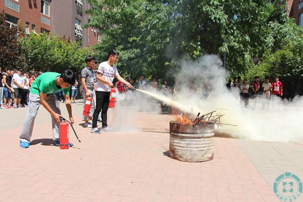 此次演习活动共分为现场灭火、组织人员疏散、灭火器使用讲解及灭火演示三个环节。随着一句“436宿舍着火了”的呼喊声,演习正式开始,参演学生在听到警报后迅速用湿毛巾掩住口鼻,在现场引导人员的指引下,在浓浓白烟中低头弯腰开始迅速撤离,并很快到达安全地带。同时,灭火组成员有条不紊的将消防栓进行了连接,并及时赶到起火点将火熄灭。
