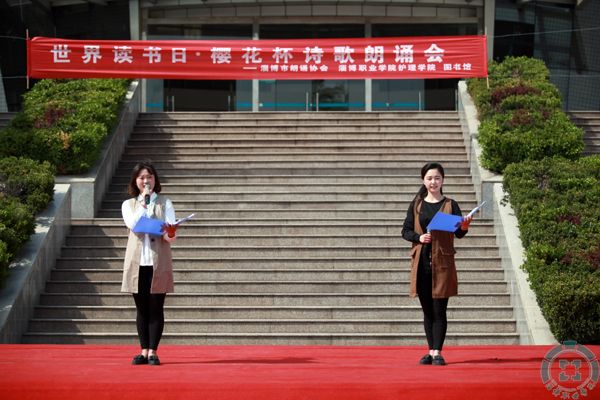 本站讯 (通讯员 刘学良)4月21日下午,为迎接4月23日“世界读书日”,增强青年学子对校园文化的认同,提高人文素养,在学院樱花绽放的最美时节,我院“世界读书日•樱花杯诗歌朗诵会”在西校区听雨湖畔举行,来自淄博市青年作家协会、淄博市朗诵协会的选手和我院图书馆的老师、云帆书香社团成员共16人朗诵了13首中外诗篇。