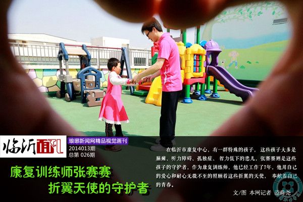 在临沂市康复中心,有一群特殊的孩子,这些孩子大多是脑瘫、听力障碍、孤独症、智力低下的患儿,作为康复训练师,张赛赛成为这些孩子的守护者,是孩子王,也是孩子们最亲近的人。他用爱心和耐心无微不至地照顾着这些折翼的天使,奉献着自己的青春。