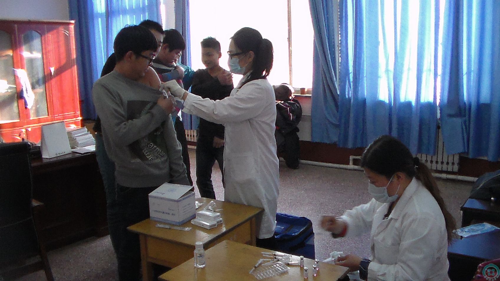 在2014级新生体检和麻疹疫苗接种工作中,校医院坚持“以师生健康为中心,以服务质量为重点”的服务理念,为师生所想、为师生所急,深入师生,服务师生,主动与傅山分院联系,上门为学生体检和接种疫苗,不仅为学生解除了往返奔波之苦,也让学生享受到了贴心、便捷、优质的医疗保健服务。