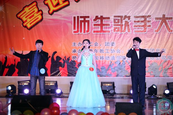 表彰大会后,举行了我院第十二届校园文化艺术节“喜迎元旦 唱响青春”师生歌手大赛决赛。决赛在萤火虫乐队热情的演奏中拉开帷幕,依次是“唱响青春”学生组个人赛、“麦动舞台”教师组个人赛和“珠联璧合”师生配唱比赛三个环节。决赛现场高潮迭起,激动人心,现场观众通过“微博墙”进行互动。学生组《红豆》、《浮夸》等歌曲唱出了青春活力,教师组《我的深情为你守候》、《美丽的心情》等专业的演唱展现了我院青年教师朝气蓬勃的精神面貌和扎实的专业功底,《祖国我为你干杯》、《今夜无眠》等师生“珠联璧合”的精彩配合体现了师生的合作精神,将比赛推向高潮。经过选手激烈角逐,评委认真评判,最终吴晓莉、李婷获得教师组一等奖,李海龙、迟行健获得学生组一等奖。