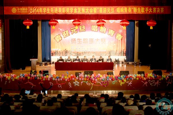 本站讯 (通讯员 张丛丛 朱琳 庞晓庆)12月30日下午,我院2014年学生先进表彰、奖学金发放大会暨“喜迎元旦 唱响青春”师生歌手大赛决赛在北校区音乐厅隆重举行。学院领导张爱民、孙启友、姜义林、曾照香、田立忠、高爱国、高霞出席大会,并同各系(院)主任(院长)、副主任(副院长)、团总支书记及师生代表800余人共同观看了比赛。