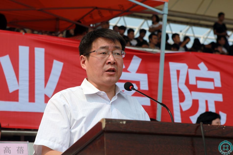 本站讯 军令响彻云霄,迷彩妆点校园。9月13日上午10时,我院2014级新生军训阅兵暨表彰大会在西区田径场隆重举行。学院领导张爱民、姜义林、孙启友、曾照香、田立忠、高爱国、高霞出席了大会。各系(院)负责人、辅导员代表以及全体教官、2014级全体新生参加了大会。大会由副院长姜义林主持。