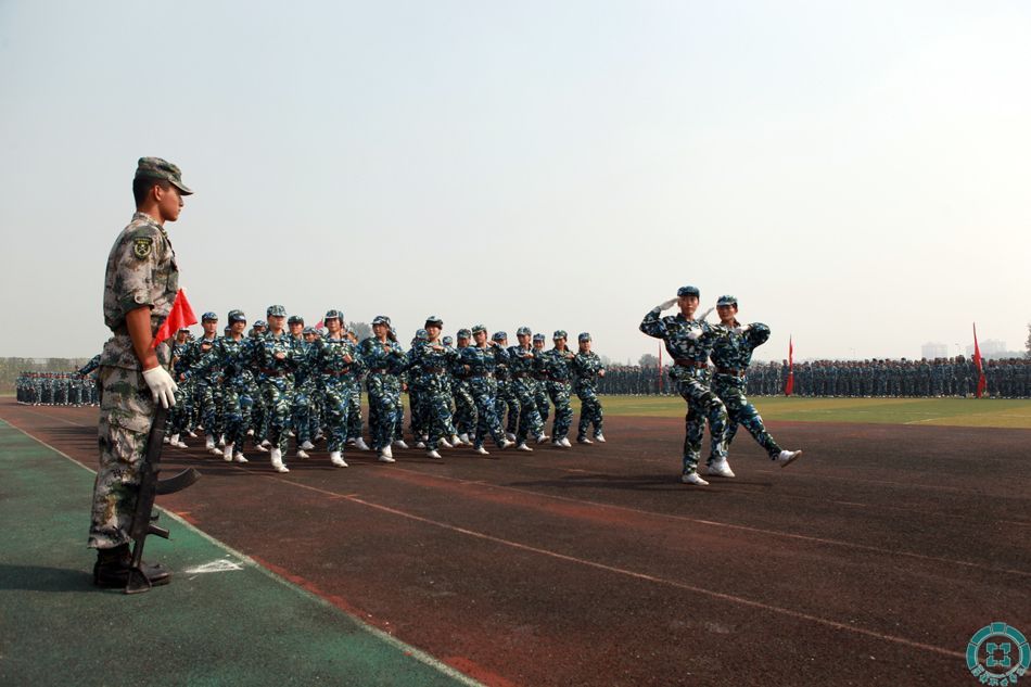在分列式进行曲中,2014级新生身着统一迷彩服组成的一个个方队,迈着整齐的步伐,以饱满的精神和高昂的士气英姿飒爽、精神抖擞地走过主席台,展示训练成果,展现青春风采,博得了阵阵掌声。
