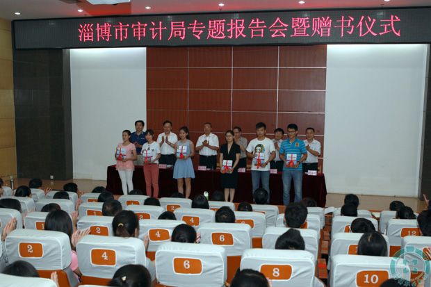 本站讯(通讯员 高丽萍)6月24日,我院举行“淄博市审计局专题报告会暨赠书仪式”。淄博市审计局副书记、副局长杜贞耐作了题为《不做假账——不做假账——会计审计的职业追求与问题对策》的报告。会后举行了赠书仪式,市审计局赠给会计学院500册《淄博市村级审计案例》。淄博市审计局局长侯全明,市纪委派驻二组书记、纪检室主任崔平生,副调研员周长银,学院党委书记张爱民,副院长姜义林等领导出席赠书仪式。会计学院老师及学生400余人参加了报告会。