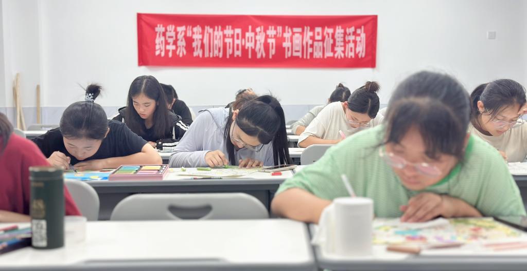 本站讯(通讯员 张楠)9月13日晚,药学系在西区B座教室组织开展“我们的节日•中秋节”书画作品征集活动。三十余名师生共同参加活动。